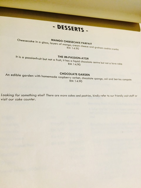 Anyway, we came here for dinner at this cafe that mainly served western food like, steak, chicken chop, spaghetti, cakes and etc. Here are their menu items.