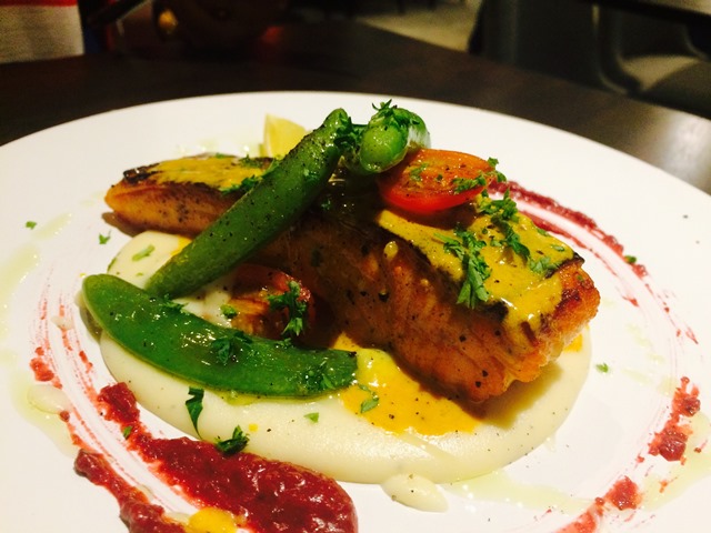 Next, this is Salmon Steak, served with beetroot sauce, asparagus and sweet pea. (RM35.90)